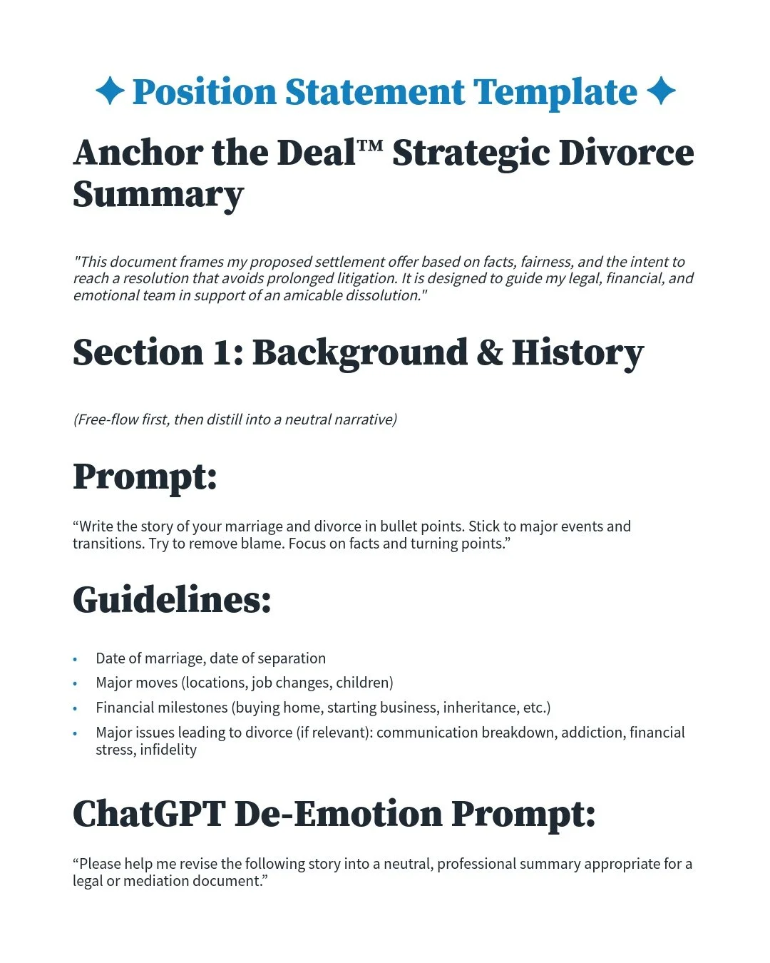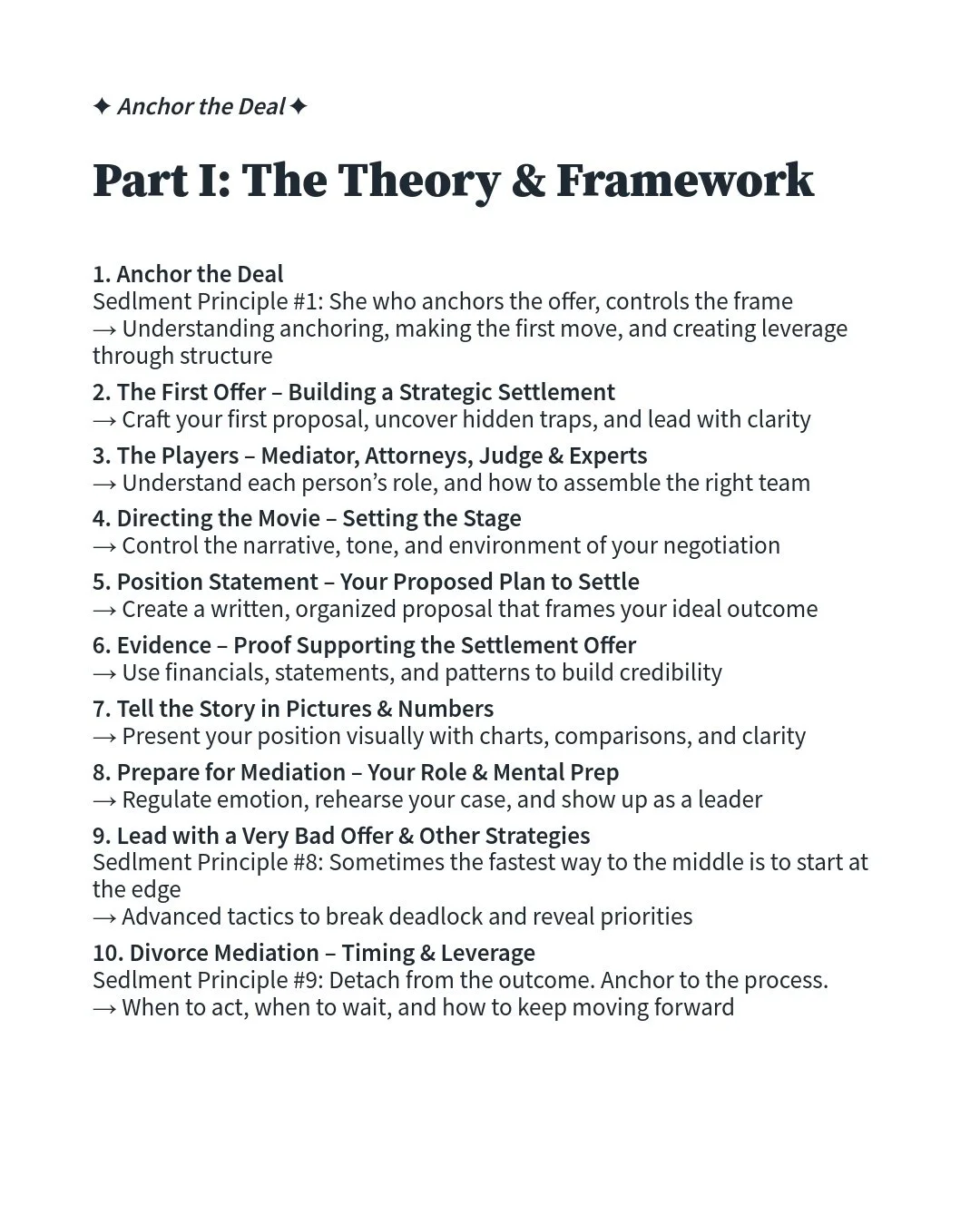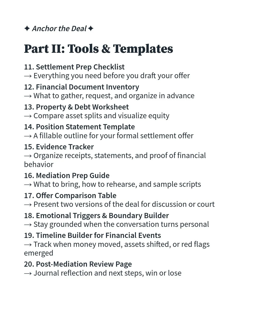 Categories: Select a Category Mediation Strategy Divorce Resources Divorce Mediation Mediation Strategy | Divorce Resources | Divorce Mediation | Anchor the Deal: A Tactical Guide to Divorce Settlement Offers $27.00 Power Moves in Divorce - A "DIY" Guide to Divorce Settlement Offers $17.00 A Guide to Empowered Divorce $0.00